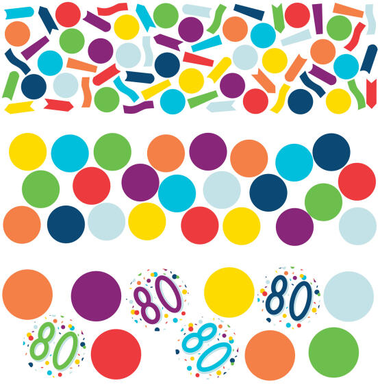 Színes születésnapi konfetti - 80 A konfetti nagyszerű kiegészítője egy születésnapi partinak. Varázsolj mosolyt vendégeid arcára, és teremts egy olyan bulit, amiről még sokáig beszélni fognak!