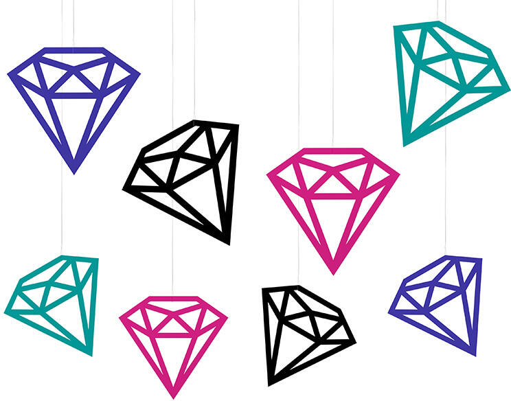 Dekorációk Gyémántok, Gyémánt kollekció, papírból, minták keveréke, készlet gyémántokat tartalmaz méretben: kb. 22x21, kb. 18x17 cm és vonal. (1 db / 8 db. )