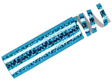 Szerpentin hologramos világos kék fóliázott papírból, 18 gurigás. Egy gyűjtő csomagban 100 rollni van. A megadott ár egy rollnira értendő. Megrendeléskor a rollni számot kell megadni nem a gyűjtő csomag számot.