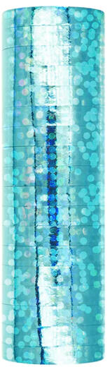Szerpentin fényes világos kék fóliázott papírból, 18 gurigás. Egy gyűjtő csomagban 100 rollni van. A megadott ár egy rollnira értendő. Megrendeléskor a rollni számot kell megadni nem a gyűjtő csomag számot.