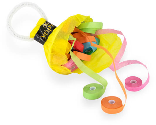 Egyetlen kígyó szélessége: 0,5 cmEgyetlen kígyó hossza: kb. 5 mHasználat: rögzítsd a medált a középső ujjadra, óvatosan tépd szét a zacskót úgy, hogy a tartalma a zárt tenyeredben maradjon, majd erőteljesen dobd a szalagokat a kiválasztott irányba. 1 doboz / 2 db,